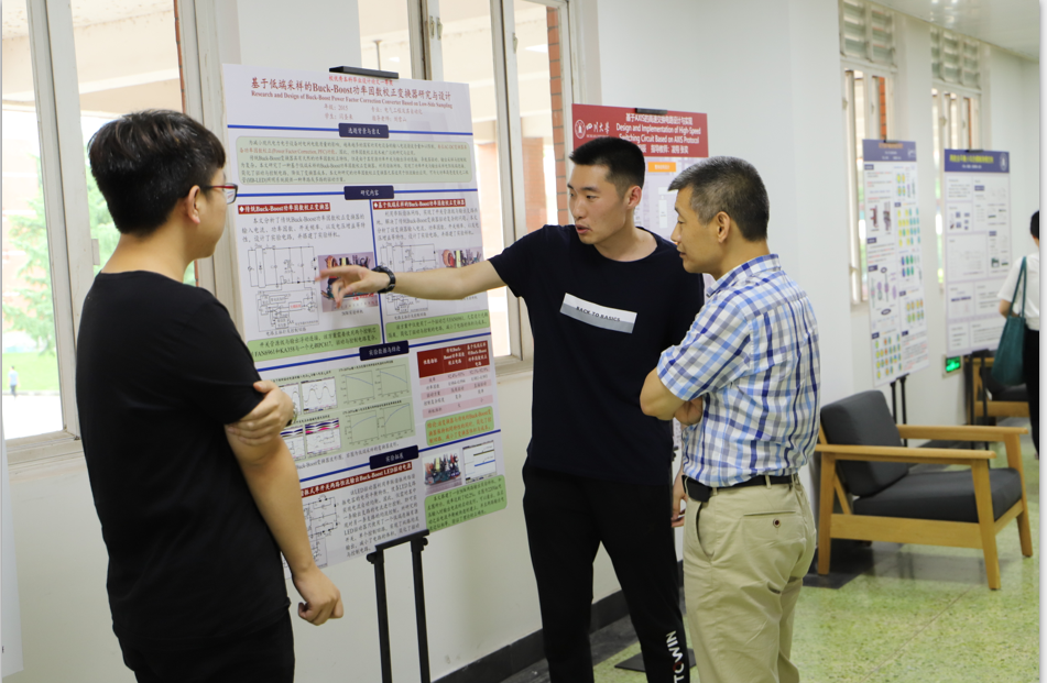 618日下午,同学们陆续来到望江基础教学楼A座二楼,参观2019届本科优秀毕业论文展。展出论文是我院获得2019届校级优秀毕业论文一、二、三等奖的部分作品。本次展出模拟正式学术会议Poster Session形式,通过图文并茂的展板介绍了论文的主要研究内容、研究成果、设计思路、创新点等,同时展出了原版论文。低年级同学认真观看着每一块展板,仔细翻看每一本论文,并不时向参展的学长、老师咨询,讨论、交流各种相关问题。