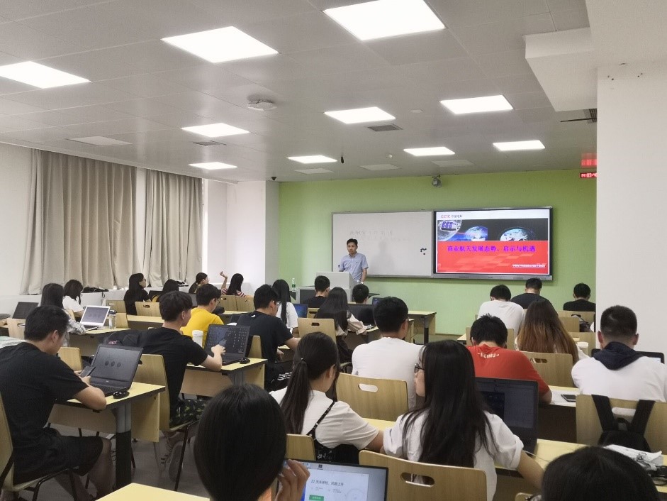 肖老师为同学们介绍了中国电子科技集团某研究所目前的研究方向和宗旨,详细讲述了自己在商业航天技术方面的研究工作,提出了自己的观点看法,并与同学们进行了互动。讲座精彩,气氛热烈,同学们收获良多。