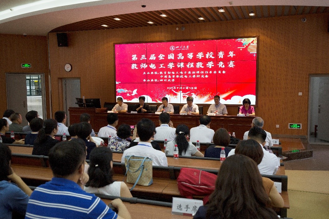为贯彻落实教育部高等学校电工电子基础课程教学指导分委员会的意见要求,落实四个回归,推动高等学校电工学任课教师专业发展和教学能力的提升,进一步激发青年教师投入课程建设和教学研究的热情,提升教学质量,2019年7月12日,由中国高等学校电工学研究会主办、我校电气工程学院承办的第三届全国高等学校青年教师电工学课程教学竞赛在望江校区基础教学楼A座举行。