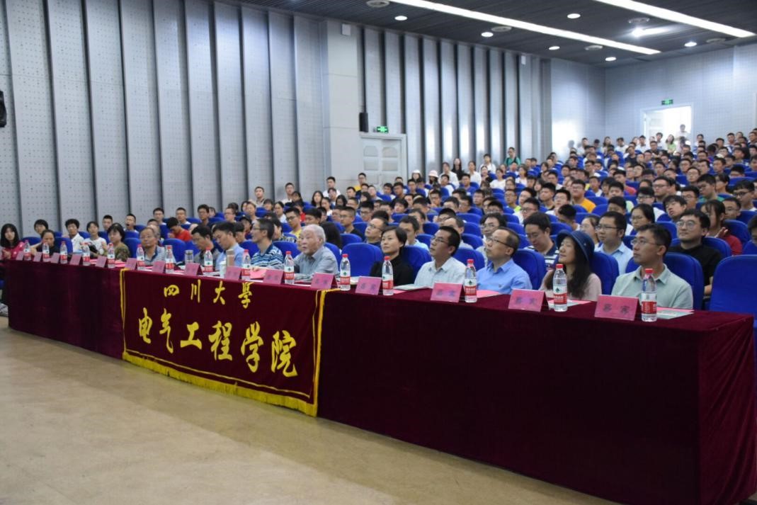 时维九月,微风和煦。2019年9月1日,电气工程学院2019级本科新生开学典礼在江安校区水上报告厅隆重举行。中国工程院院士雷清泉教授、学院党委书记韩芳、院长肖先勇、学院党委副书记兼纪委书记张英敏、学院党委副书记戴婷婷、副院长李长松、院长助理李成鑫、电气工程系主任王渝红、副主任曾成碧、电气工程系第一党支部书记赵莉华、副书记刘亚梅、自动化系主任佃松宜、副主任曾晓东、自动化系党支部书记刘念、电工电子基础教学实验中心主任周群、电工电子基础教学实验中心党支部书记梁斌、专业实验中心主任肖勇、专业实验中心党支部书记冉立等院系领导,博士生导师代表周凯、刘凯、王为老师,新生班主任邱晓燕等老师、学院教导员李小根老师、新生辅导员老师等出席了本次大会。大会由学院党委副书记戴婷婷主持。