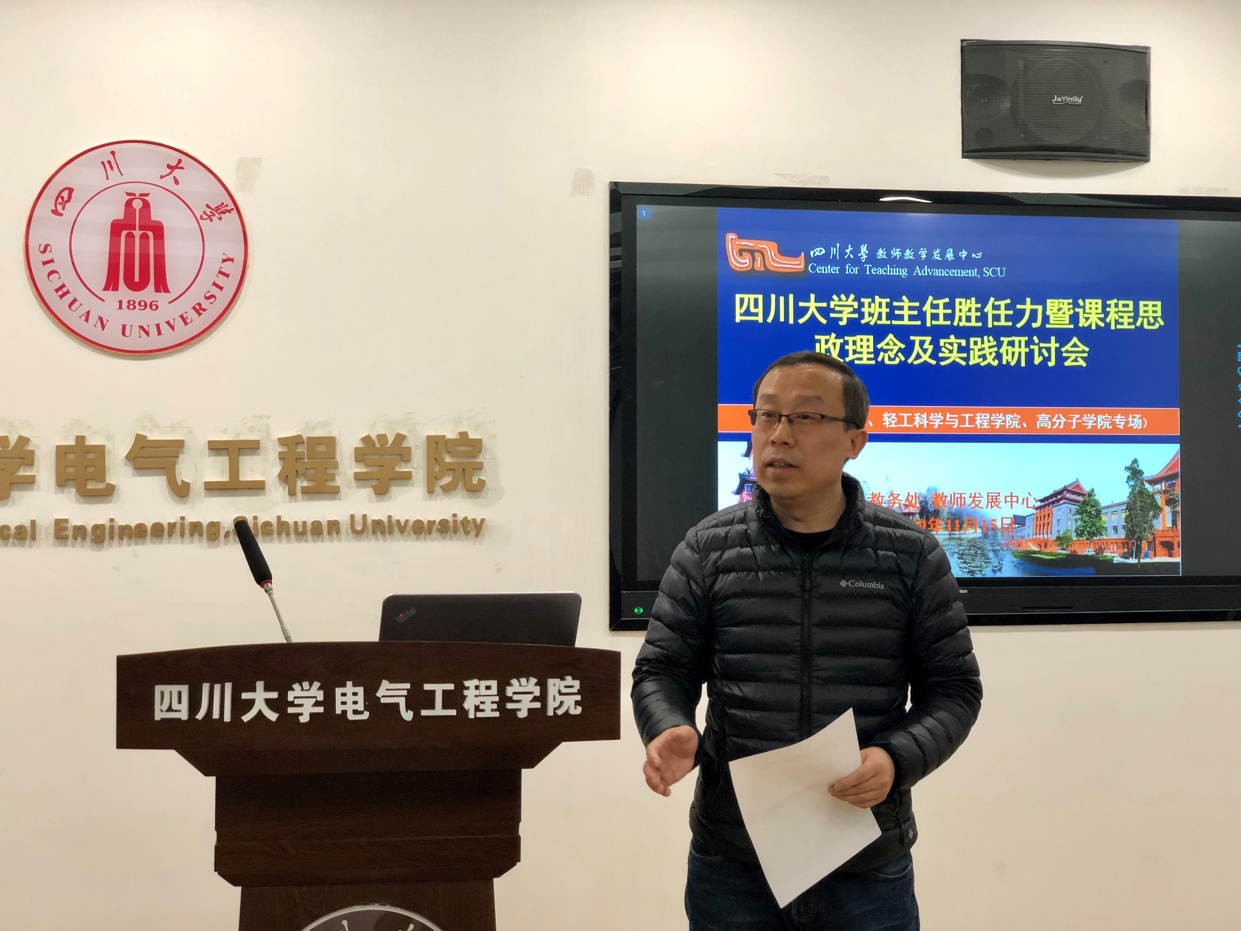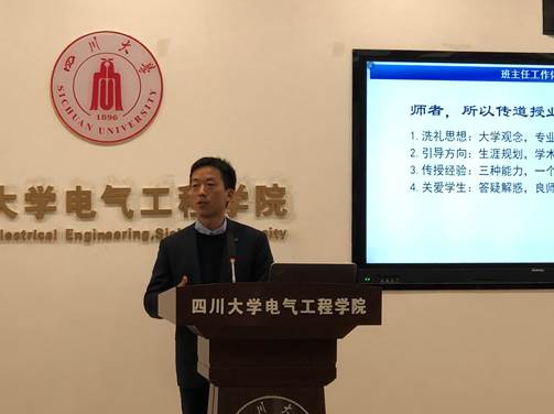 2019年11月15日下午15:00,由四川大学教务处、教师教学发展中心、电气工程学院、轻工科学与工程学院、高分子科学与工程学院联合举办的四川大学班主任胜任力暨课程思政理念及实践研讨会,在望江校区基础教学楼B206电气工程学院会议室举行。四川大学教务处副处长兰利琼、副处长李华等出席会议,三个学院的班主任以及青年教师代表参加了本次研讨会。会议由电气工程学院副院长李长松主持。