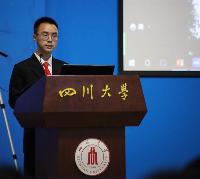 2020级电气工程及其自动化专业的熊志强同学代表新生发言,他首先向报到期间为新生提供过帮助的老师和同学表达了诚挚的感激之情,同时鼓励同学们不忘过往,抓住当下,放眼未来,号召同学们积极扛起肩上的责任,为中国的发展和世界的和平贡献出川大电气人的力量。