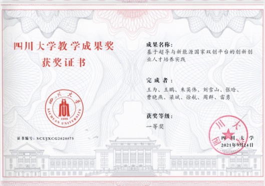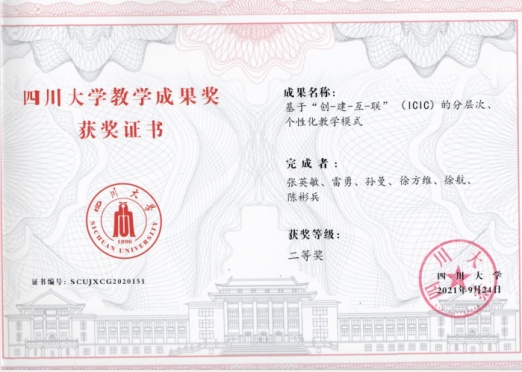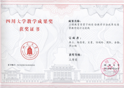 四川大学教学成果奖是学校为鼓励教师在教学活动中积极开展教育教学研究,深入推进人才培养改革与创新,不断提高质量和水平而设立的奖项。本次学院受表彰的成果体现了学院在立德树人、改革创新和提升质量方面取得的重大成就,祝贺获得表彰的老师们!