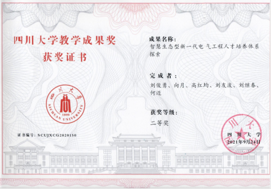 附:2020年电气工程学院获得四川大学教学成果奖明细