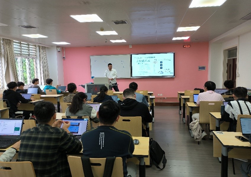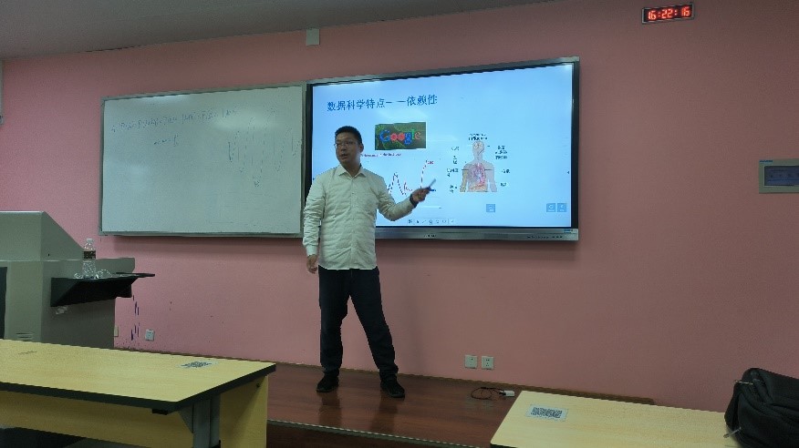 伴随着同学们热烈的掌声,滕老师的讲座正式开始。滕老师的讲座包含四个部分,第一部分围绕信息互联互通展开,深入浅出地讲述了互联网从早期的只读互联网到如今的可读写互联网的发展历程,生动直观地引出了物联网与移动互联网的概念。第二个部分聚焦人工智能,从算力智能、感知智能和认知智能三个维度出发,用分布式计算、微软小冰和ALPHA GO等案例详尽地介绍了人工智能在这些领域的发展,拓宽了同学们对人工智能的应用领域、特性、发展概况和核心技术等的认知视野。接着,滕老师深入讲解了数据科学的特性,用一个个生动的例子分析了数据科学的半主观性、相关性、依赖性和复杂性。最后,滕老师以用户用电行为分析技术研究为例,介绍了通过用电行为分析技术实现居民人口流动监测、疫情防控、污染防治的原理方法,加深了同学们对数据科学的认识和理解。