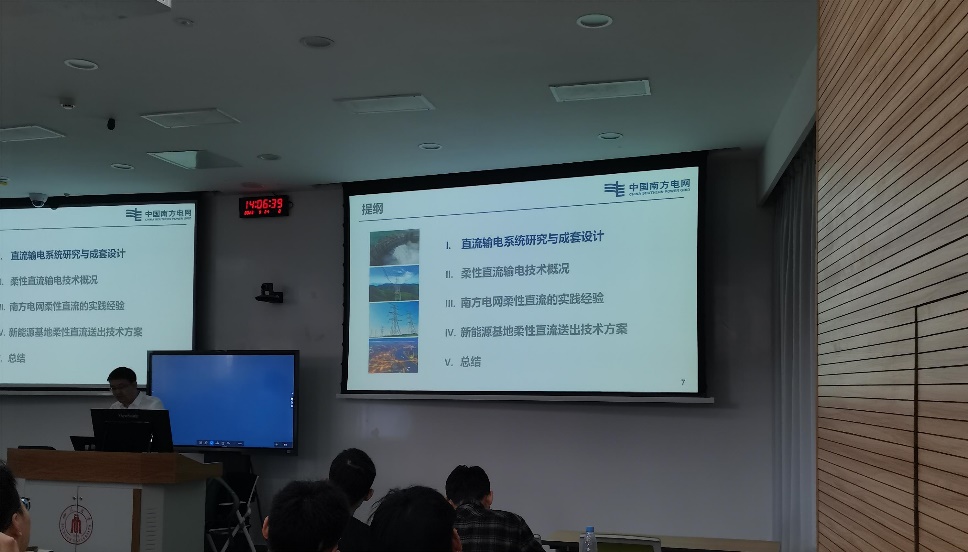 9月24日下午,学院邀请南方电网公司高级技术专家,南网科研院直流所副所长,正高级工程师赵晓斌,在望江校区基础教学楼C座102开展了题为“南方电网柔性直流的实践经验与发展”的学术讲座。讲座由马俊鹏副教授主持,2023级电气工程专业研究生参加。
