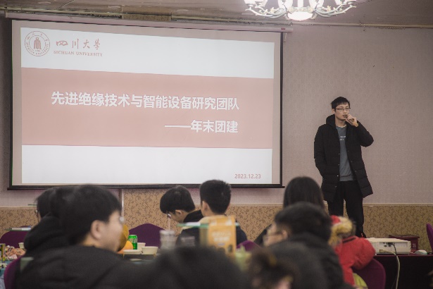 征途凌云志不渝,翱翔鹏路展壮丽风采。为激发团队凝聚力,欢迎新老师和新同学的加入,促进组内师生之间、同学之间更深层次的交流。先进电工材料与新型电气设备研究团队于2023年12月23日在正觉山庄举办了一场别开生面的年末团建活动。课题组贾申利、赵莉华等九位老师和四十多位同学参加了本次团建活动。活动现场,火热的气氛与屋外的寒风形成鲜明的对比,参与者们纷纷放下工作,投入到轻松愉快的氛围中。欢笑声与掌声在空气中交织,共同谱成了一曲和谐的交响乐。
