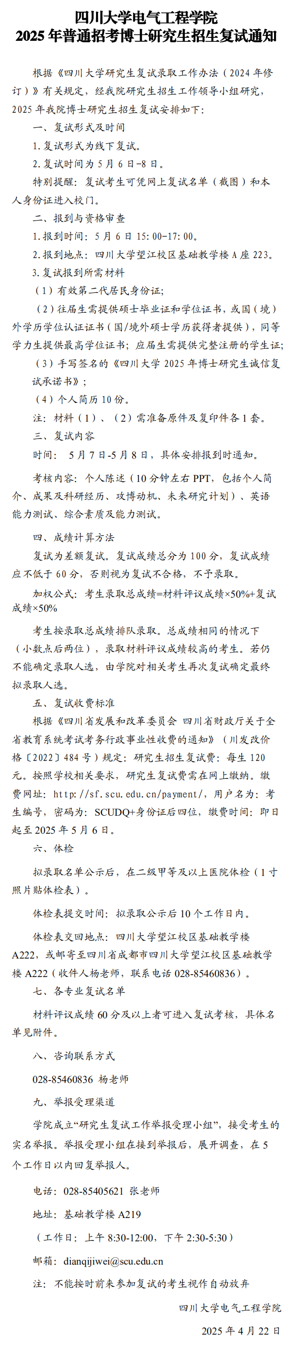太阳成集团tyc122cc2025年普通招考博士研究生招生复试通知