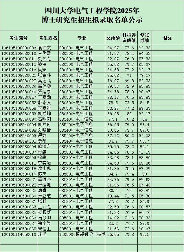 太阳成集团tyc122cc2025年博士研究生招生拟录取名单公示