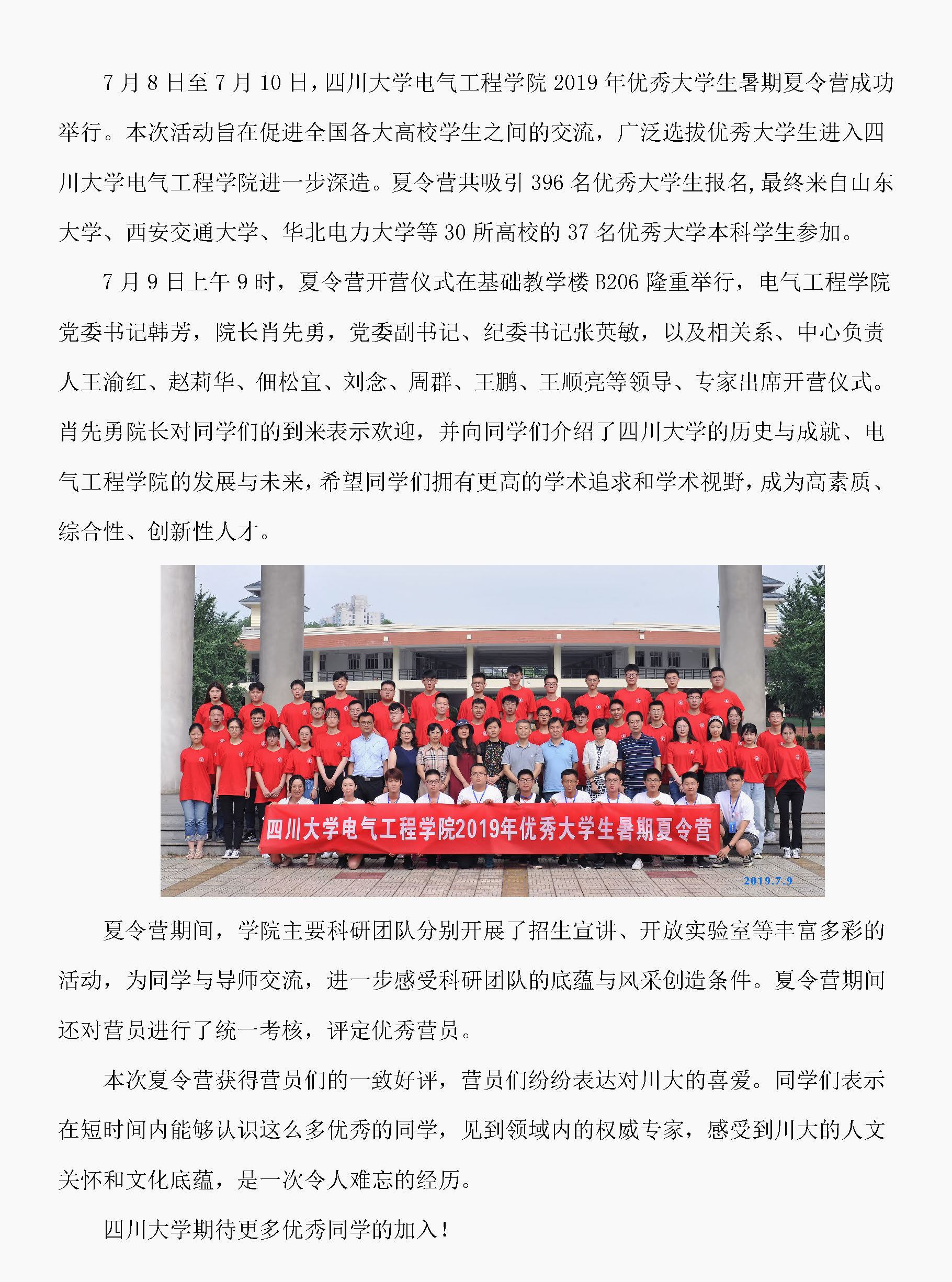 太阳成集团tyc122cc成功举办2019年优秀大学生夏令营