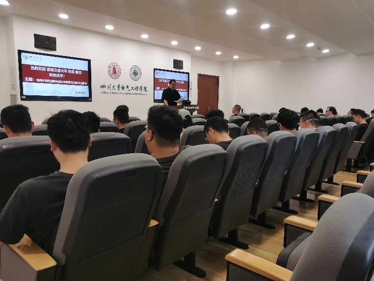 2023年5月14日,西南交通大学林圣教授应邀在四川大学基础教学楼B座206开展题为“电网中地铁杂散电流分布特征及抑制方法研究”的学术讲座。本次讲座由臧天磊老师主持。