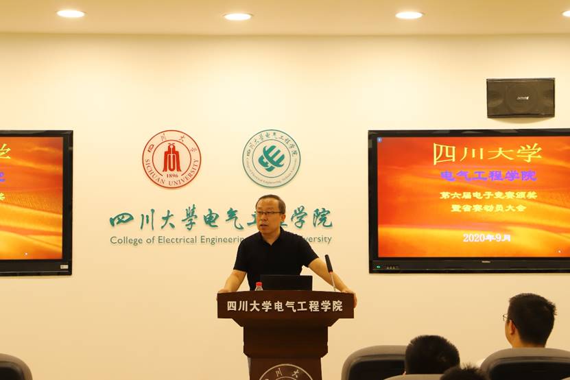 9月4日上午,电气工程学院第六届电子设计竞赛颁奖暨2020省赛动员大会在望江校区基础教学楼B206顺利召开。参加大会的有学院副院长李长松,周群、刘雪山、李国才等指导教师代表,教导员李小根老师,以及获奖同学代表。