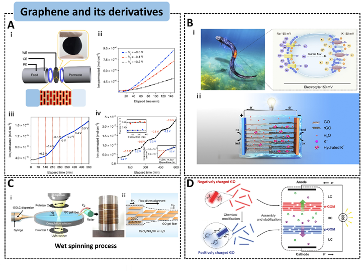 图2.石墨烯及其衍生物构筑的二维石墨烯离子通道及其绿色电能转化与应用