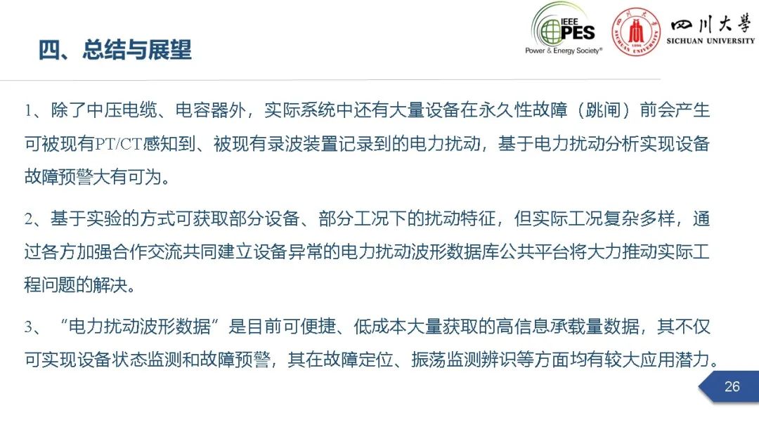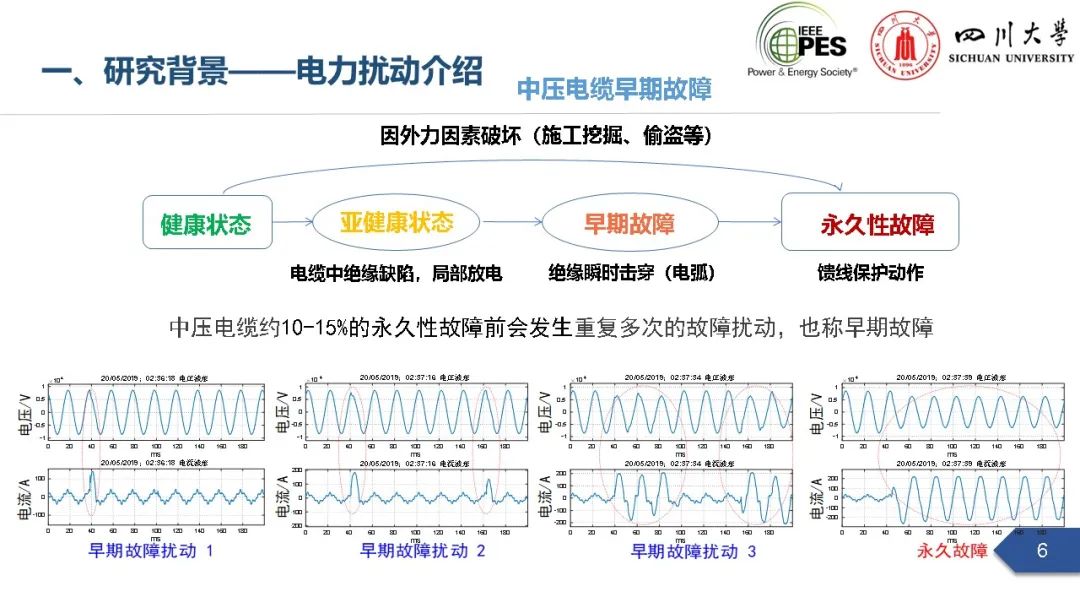 会上,太阳成集团tyc122cc副研究员张文海作了题为“电力扰动分析在设备故障预警中的应用初探”的主旨报告,指出利用站端电压/电流互感器直接测量获取的电力扰动波形数据可以有效地感知设备和系统状态,并在此基础上针对中压电缆和电力电容器两类设备在永久性故障前期可能出现的扰动进行了探索性研究,提出了基于电力扰动监测的中压电缆和电力电容器故障预警方案。经本人授权,与大家分享报告PPT。