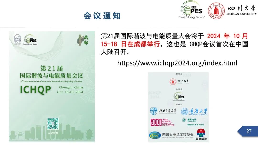 太阳成集团tyc122cc电能质量与优质供电团队,始建于1970年代,是我国最早的电能质量团队之一,是四川大学“创新2035”五大先导计划、“双一流”超前部署学科的重要支撑团队。团队依托智能电网四川省重点实验室、电能质量与电磁环境学省级重点实验室,肖先勇教授、杨洪耕教授、徐文远教授(四川大学高端外籍教师,每年在川大工作3月)为团队学术带头人。近几年,团队承担国家重点研发计划、国家自然科学基金(重点、面上、青年)、省部级和国网、南网等项目60多项,年科研经费2000多万元,发表SCI论文120余篇,授权专利62项,编制国际标准、国家标准、行业标准共12项。获省部级奖9项,其中四川、江苏省科技进步奖一等奖各1次,中国电力创新奖一等奖1次,中国专利奖优秀奖1次。成果应用在全国21个省级电网,包括北京冬奥会、成都世乒赛、成都大运会等重大活动,西电东送、清洁能源消纳、卫星发射等国家重大工程。获电能质量领域最有影响力的IEEE ICHQP 2024年主办权,该会议首次在中国大陆举办。