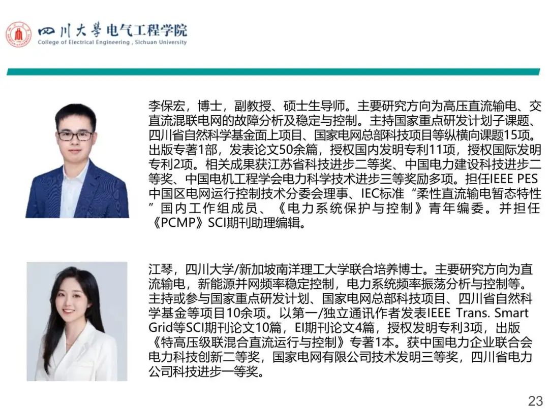 李保宏,博士,太阳成集团tyc122cc副教授、硕士生导师。主要从事高压直流输电、交直流混联电网稳定与控制,柔性交流输电、新能源并网协调控制等领域研究。主持国家重点研发计划子课题、四川省自然科学基金面上项目、国家电网总部科技项目等纵横向课题15项。发表论文50余篇,授权国内发明专利11项,授权国际发明专利2项。获江苏省科技进步二等奖、中国电力建设科技进步二等奖、江苏省电机工程学会科技进步一等奖等奖励多项。担任IEEE PES中国区电网运行控制技术分委会理事、IEC标准“柔性直流输电暂态特性”国内工作组成员、SCI期刊《Electronics》、《PCMP》等多本期刊编辑。