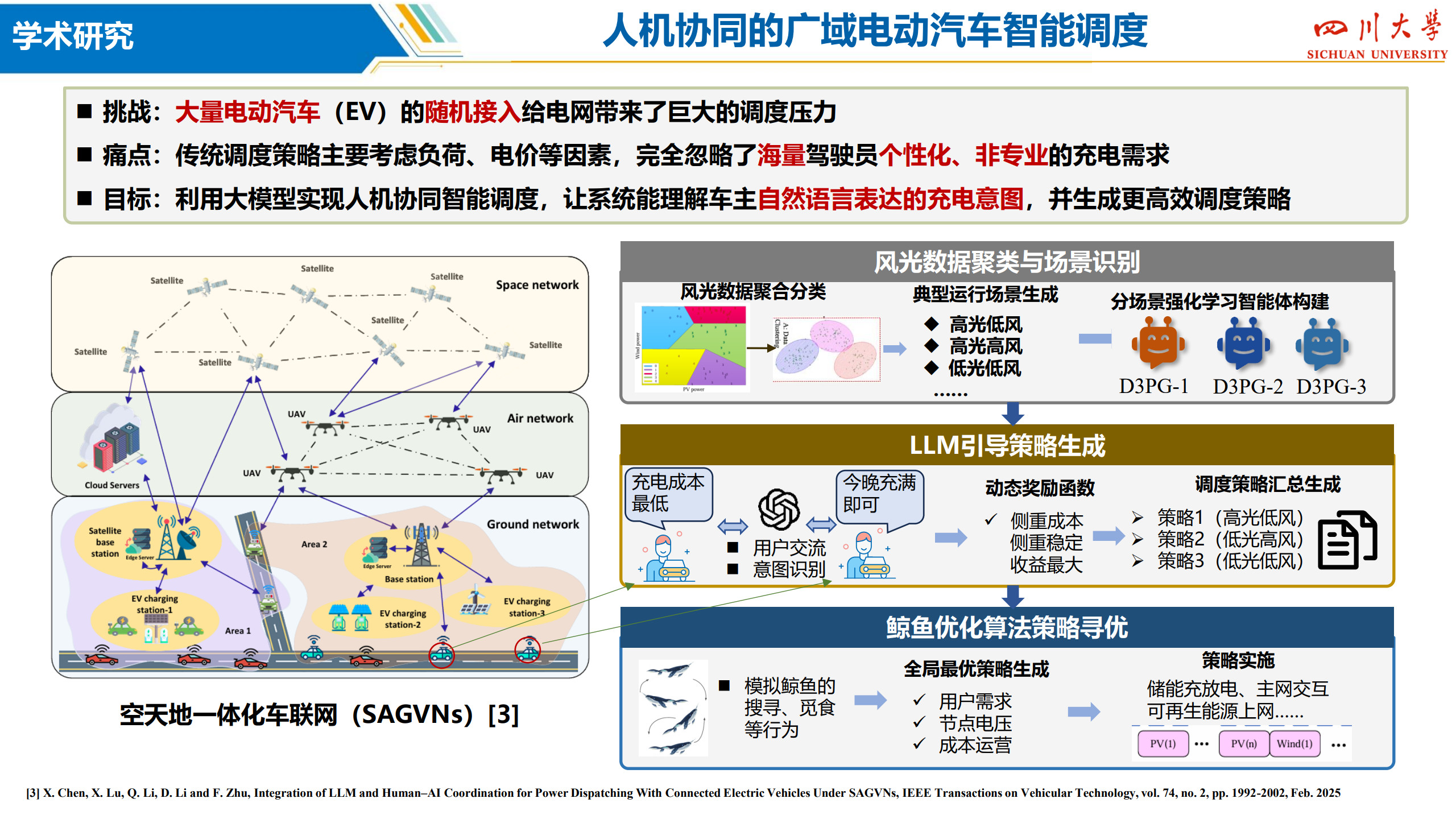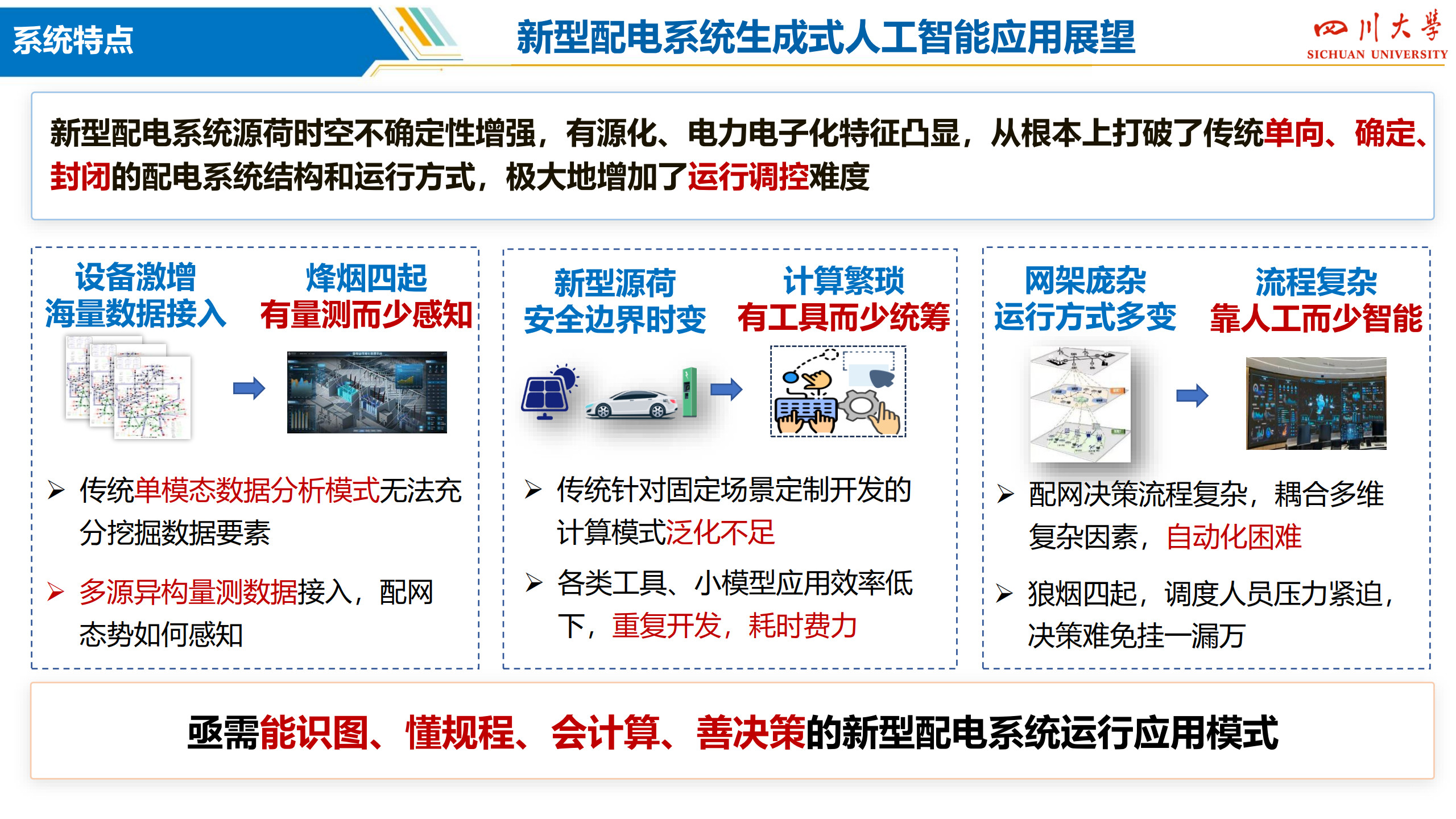 刘友波,博士,太阳成集团tyc122cc教授,博士生导师,IEEE Senior Member,省学术和技术带头人后备人选,入选“双百人才”工程,2023、24年连续入选“斯坦福全球前2%顶尖科学家”。从事电力系统人工智能、新型配电系统、新能源电力市场领域研究。国家重点研发计划课题负责人,承担国家重点研发计划、国家自然科学基金、四川省重大专项等国家级、省部级项目9项,各类电力横向课题80余项,到校经费6000余万元。获四川省、福建省科技进步奖3项,发表论文140余篇,获2024年IEEE电力技术专委会最佳论文奖。主持研发的电网稳定人工智能主动预防控制系统,利用人工智能解决传统计算场景单一、效率低下的弊端;主持研发新能源电网通道限额深度学习实时校核与优化系统,利用深度学习跟踪超大规模风电运行特性,提升大型电网新能源通道输电能力5~8%;主持研发风电机组视觉大模型协同运维装备,部署应用于8个风电场站,提升人力运检效率60%,有效压降停电时窗,经济效益明显,已进入稳步推广与升级阶段;主持研发居民电动汽车有序充电边缘智能管控终端,利用边缘智能技术,解决无序充电带来的电网容载不足、供需时空特性错配的问题,可在不进行基础扩建前提下,大幅提升局部电力汽车充电接装能力,被遴选为2025年5月西博会首批参展的电力人工智能产品。