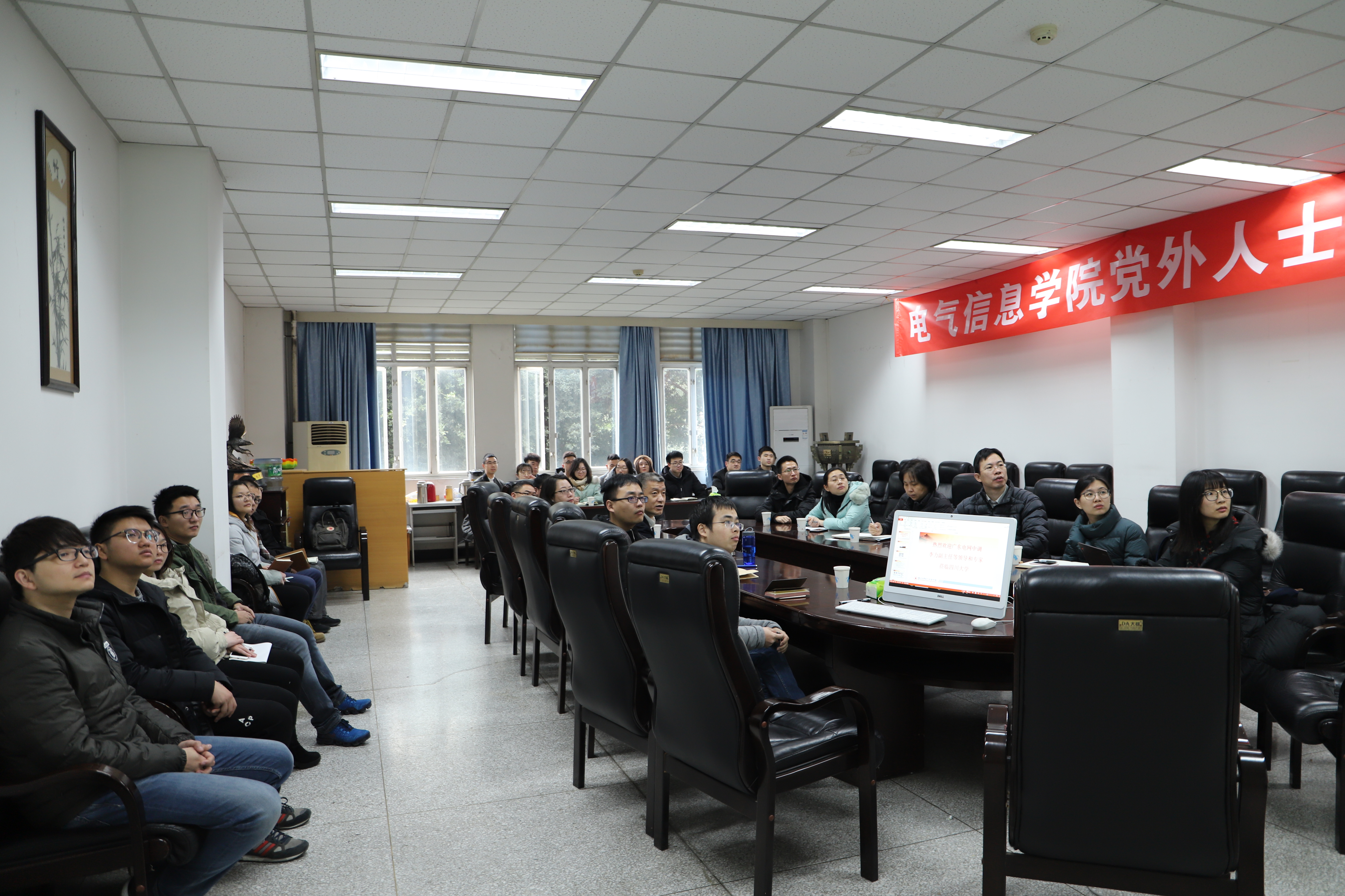 首先,肖先勇教授介绍了我院的发展历史、师资力量、科研情况和主要科研团队。随后,广东电网电力调度控制中心系统分析部专责苗璐介绍了广东电网现状以及面临的问题。接下来,电力系统稳定与控制研究团队何川副研究员,智能电网优化运行与电力市场运营研究团队沈晓东副教授分别介绍了所属团队的实验室建设情况、研究方向、以及科研学术成果。