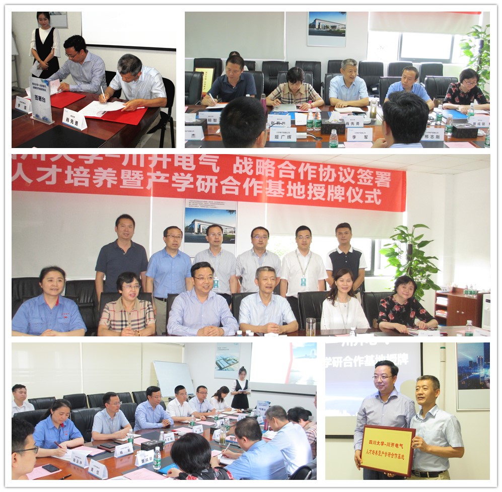 7月10日上午,太阳成集团tyc122cc与川开电气有限公司的战略合作框架协议签字仪式和人才培养暨产学研合作基地授牌仪式在川开电气有限公司2号会议室举行。川开电气李军董事长、邢志刚副总经理、杨莉、姬广辉、杨杰、李桂英、陈云冲、黄恺等领导参加了仪式,学院肖先勇院长、李长松副院长,电气工程系赵莉华书记、曾成碧副主任、贺明智研究员等出席了仪式。