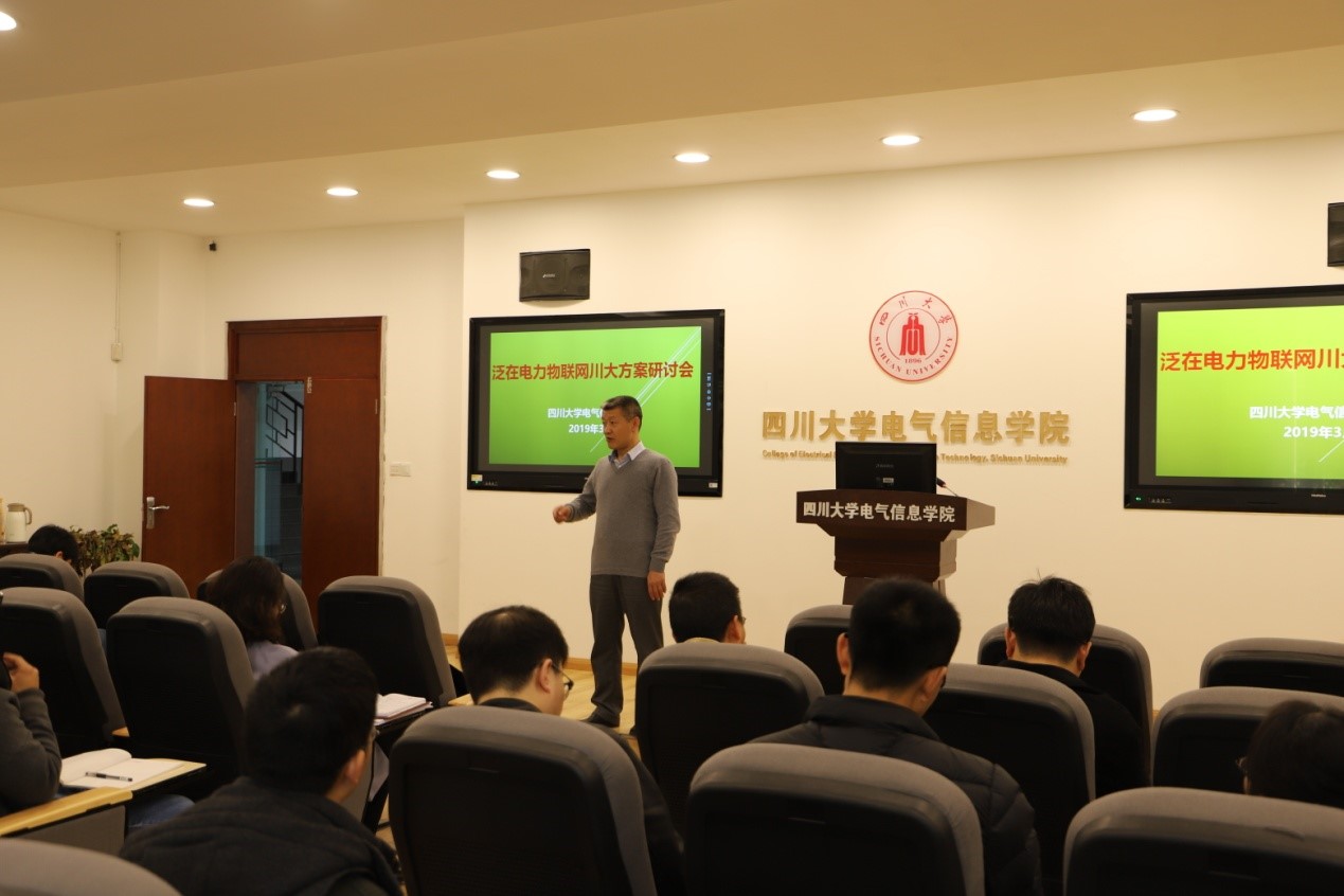 3月8日,国家电网有限公司泛在电力物联网建设工作部署会议在京召开。3月20日,学院在深入解读国家电网公司关于泛在电力物联网建设总体规划、结合学院自身科研力量的基础上,举办了“泛在电力物联网建设方案研讨会”。会议通过分析电网公司和国民经济发展在新形势下重大需求,展开对泛在电力物联网建设方案、运行技术川大解决方案的研究探讨,拉开了四川大学泛在电力物联网研究中心的建设帷幕。
