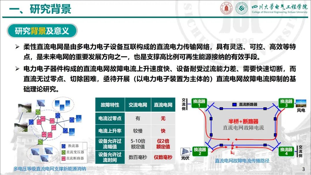 在2023年4月国网智研院与四川大学高压直流输电课题组技术交流论坛上,学院副教授李保宏作了题为“基于高频阻抗特性的直流电网拓扑结构影响故障电流机理”的报告,经本人授权,与大家分享。