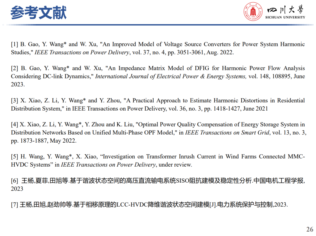 王杨,研究员,博士生导师,电气工程学院电气工程系副主任,主要开展新能源电力系统电能质量与稳定性相关研究,入选四川省天府峨眉计划、中国电机工程学会青年托举、四川大学双百人才计划。已发表相关SCI论文50余篇,主持国家自然基金2项,获四川省科技进步一等奖,中国电力科技创新一等奖。担任IEEE Transactions on Power Delivery, PCMP等6个期刊编委。