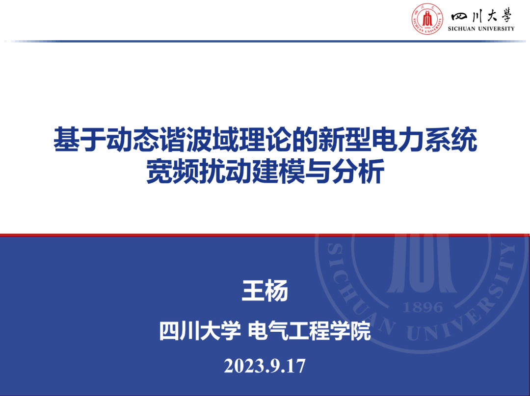 2023年9月16日,第十八届中国电工技术学会学术年会在江西省南昌市召开。会上,学院王杨研究员作了题为“基于动态谐波域理论的新型电力系统宽频扰动建模与分析”的报告,经本人授权,与大家分享。