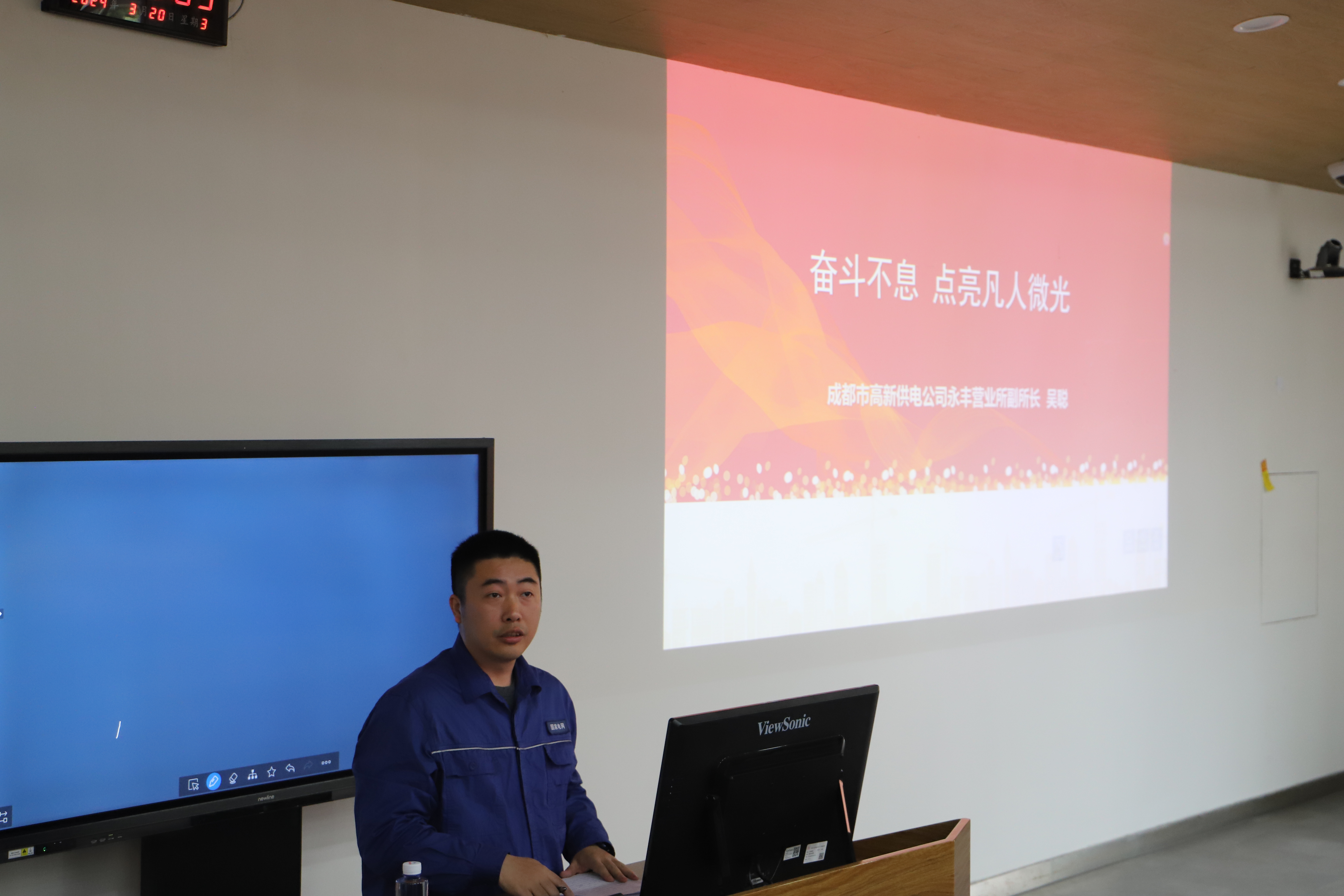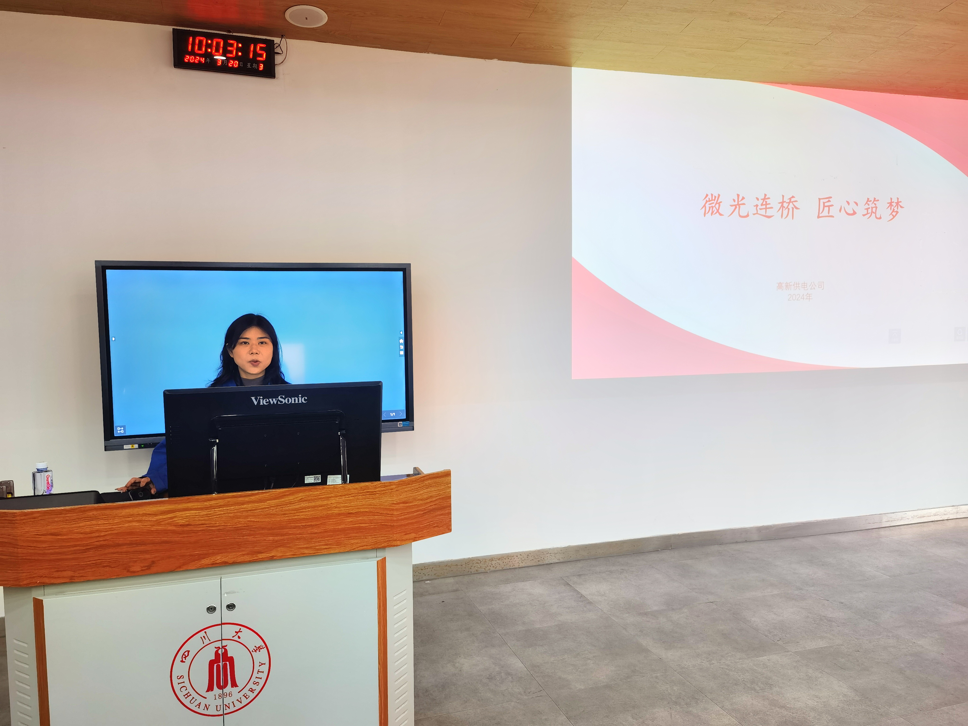 首先,高新供电公司高压大客户经理,团支部书记贾楚蕴对高新供电公司的基本情况进行了介绍,她指出在人民群众从“用上电”到“用好电”的转变中,高新供电公司立足于成都中心城区,肩负着超大城市现代一流保供及卓越服务建设的重任,为高新区建成世界一流高科技园区、武侯区创建国际商务高地、人文宜居武侯贡献高新供电的智慧和力量。
