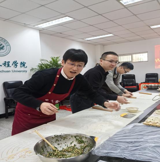 迎新春活动在一片欢声笑语中拉开帷幕。和面、擀皮、拌馅、包饺子、写春联、贴福字、煮汤圆……大家忙得不亦乐乎,人人脸上充满笑容,现场氛围热火朝天。在电气工程系党支部和工会的支持下,今年的活动还添置了“新装备”,一条条电气定制款围裙,一个个解放双手的切菜机、和面机,让老师们从包饺子“小白”变成了“行家”。大家分工协作,欢声笑语,拉家常,话友情,彼此分享一年来的收获和喜悦。