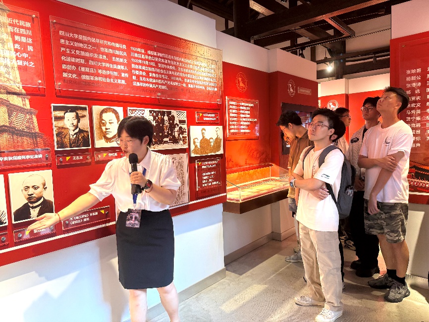 随着移步至川大校友英烈事迹纪念馆。大家回顾了从辛亥革命到新中国成立、从抗日烽火到社会主义建设时期,百余位川大校友为民族独立、人民解放和国家富强献出宝贵生命的英雄壮举。他们中,有在渣滓洞顽强斗争、高唱《正气歌》的何懋金、蒋开萍,有在抗美援朝战场壮烈牺牲的黄继光式英雄柴云振……他们的名字与事迹在纪念馆的展墙和展柜中熠熠生辉,共同构筑起一道川大人前仆后继、以身许国的精神丰碑。川大这片热土,始终浸润着“振兴民族、献身国家”的深厚血脉,英烈们虽身处不同年代,却以相同信念之光照亮后来者的征途。