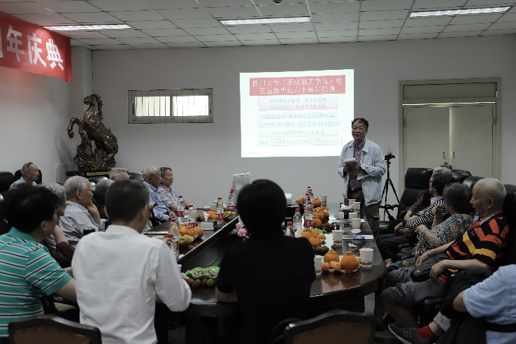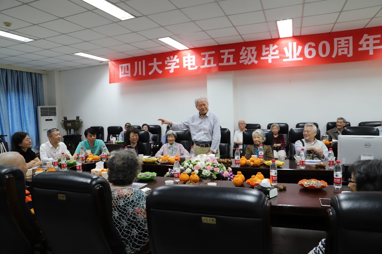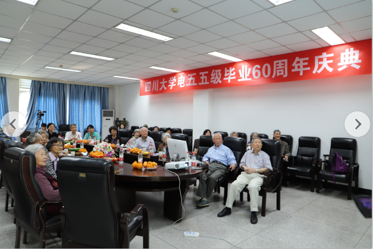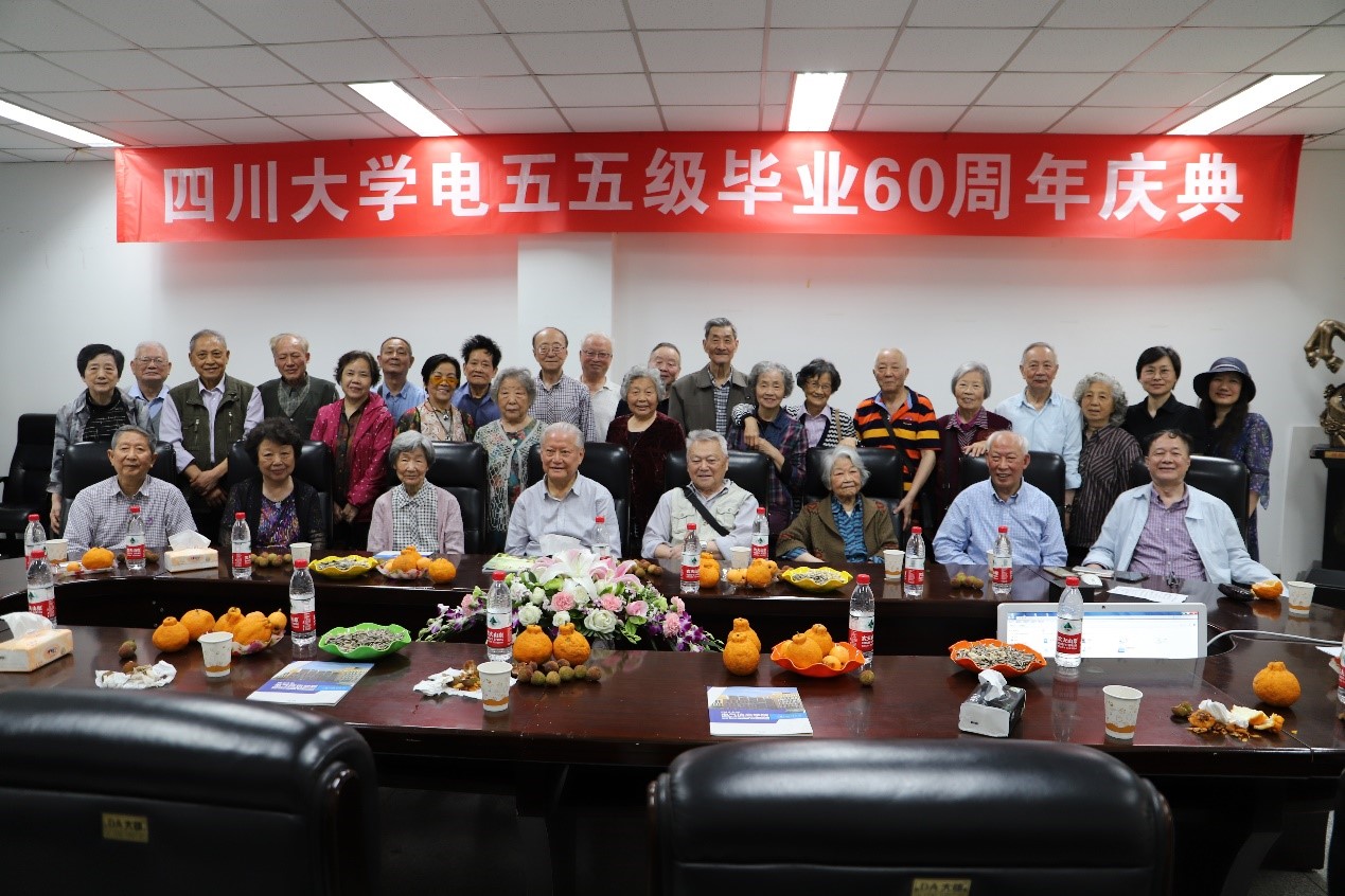 2019年5月23日,四川大学(原成都工学院)电55级毕业六十周年庆典于四川大学望江校区基础教学楼220会议室成功举行。参加此次庆典活动的有韩帮彦、张道泉、刘东珍、张述芳等学院老教师代表,还有尹可华、钟岷秀、王贵德等20多位电55级老校友代表。四川大学对外联络办公室主任荣建国,电气工程学院党委书记韩芳、院长肖先勇、副书记张英敏、戴婷婷、副院长李长松等参加了此次庆典。
