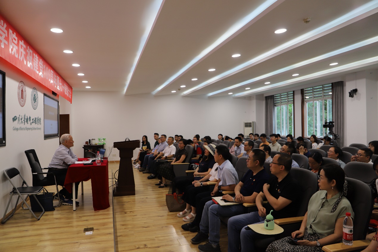 学院离退休同志代表、原四川省副省长韩邦彦老师多次代表老同志们在学院组织的交流会上发言,对学院在抓实人才培养,狠抓思想政治教育和教育改革,狠抓学风、教风、校风建设等方面提出意见和建议。特别在2021年学院庆祝建党100周年暨七一表彰大会上,拥有68年党龄的韩邦彦老师以“历程、初心、发展”为主题向党员师生代表讲授了党史学习教育专题党课。韩老师介绍了在“兴国大业”、“富国大业”、“强国大业”阶段中国共产党在长期奋斗中为国家和民族作出的伟大贡献,同时还回顾了四川大学和电气工程学科的发展历程及取得的成就,他将自己的亲身经历和感悟放在百年党史发展的背景下,分享自己的入党初心,他殷切希望党员师生都能成为“有理想信念、有道德情操、有扎实学识、有仁爱之心”的对社会有用之人;老师们要坚守立德树人初心,为社会主义建设事业培养更多具有家国情怀、社会创造力和创新思维能力的可靠建设者和接班人。