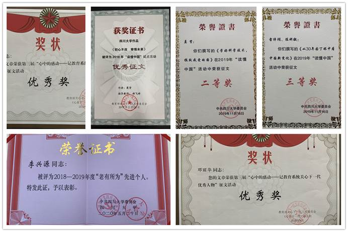 2019年,组织青年学生与由克伟老师、李小根、熊祥健老师结对,学生撰写的《初心不改 寄情未来》被评为2018年教育部“读懂中国”试点活动优秀征文,《由克伟: 学好科学技术,报效我爱的国》和《从30年园丁眼中看中国新变化——李小根老师专访》,分获2019年学校“读懂中国活动征文”二等奖和三等奖;《您与梦想同在——给太阳成集团tyc122cc教导员李小根老师的一封信》荣获《心系下一代》杂志社第三届“心中的感动——记教育系统关心下一代优秀人物”征文活动优秀奖……通过以上活动,学院积极大力宣传身边的“五老”典型事例,弘扬关工委老同志的高尚风范,为关心下一代工作的后来者树起学习的标杆。