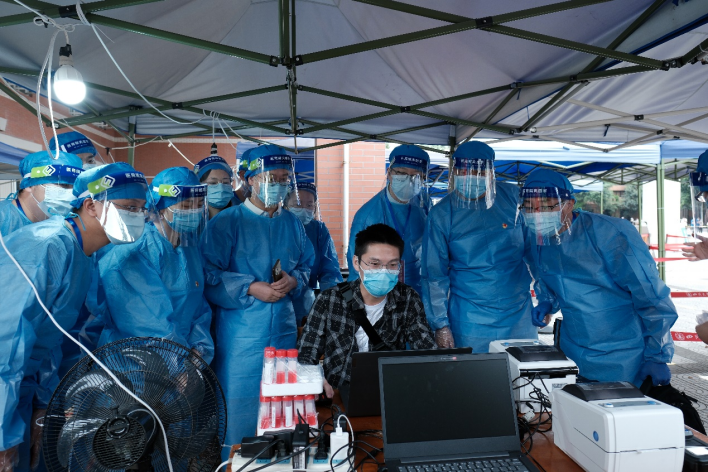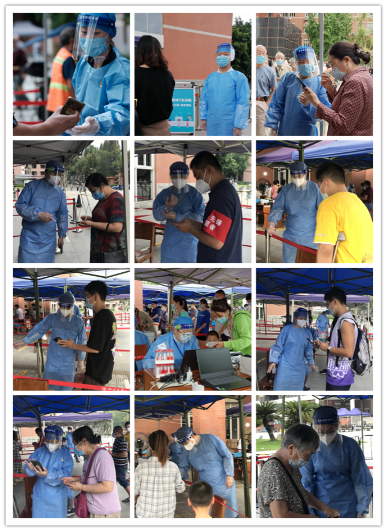 2022年9月4日和7日,学院党政领导带队,先后两批共19位党员教职工在望江校区基础教学楼核酸检测点投入疫情防控志愿服务工作。在经过现场医护人员的培训指导后,他们身着防护服,认真做好核酸检测信息核查、流程讲解、信息录入和现场秩序维护等工作。志愿者们克服种种困难,稳妥应对突发状况,有效助力学校全员核酸检测工作有序高效进行。