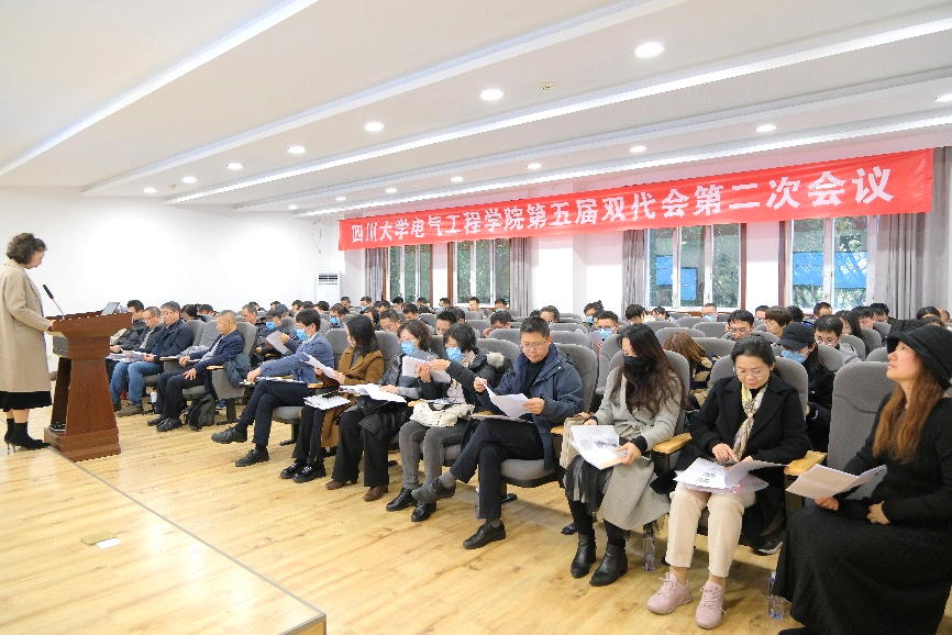 12月8日下午,电气工程学院第五届“双代会”第二次会议在望江校区顺利举行。学院“双代会”正式代表、特邀代表及列席代表86人参加会议。学校党委第一巡视组成员到会指导。本次双代会主题为“砥砺前行促发展自立自强创一流”。