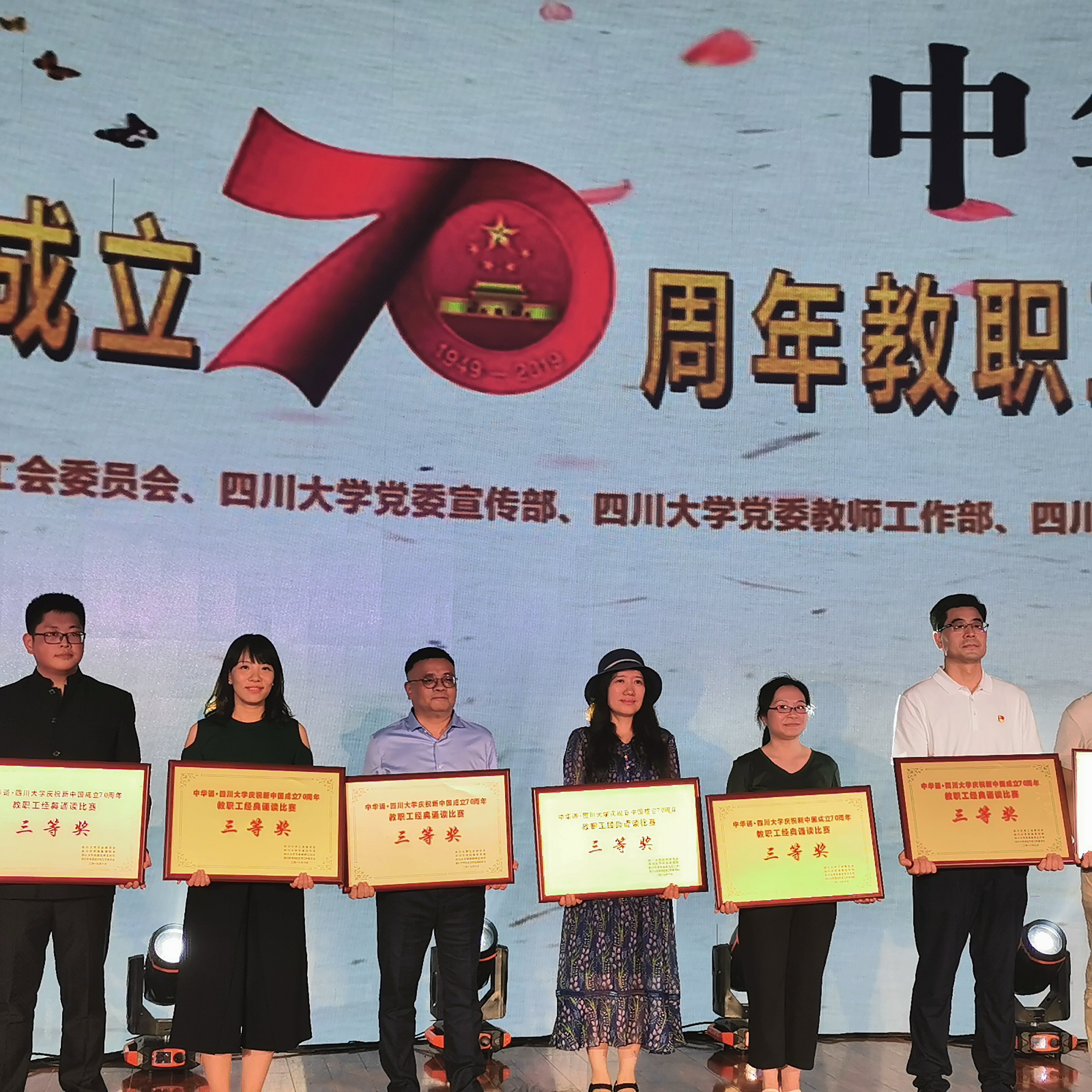 为进一步促进我校精神文明建设,彰显中华语言文化魅力,弘扬中华优秀传统文化内涵,热烈庆祝新中国成立70周年,学校于2019年6月5日举办“中华诵·四川大学庆祝新中国成立70周年教职工经典诵读比赛”。