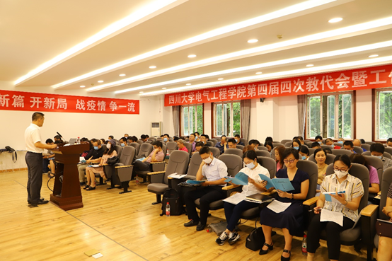 2020年7月10日下午,电气工程学院第四届“双代会”第四次会议在望江校区基础教学楼B206会议室胜利召开。学院双代会正式代表、特邀代表及列席代表近80人出席了本次会议。本次会议的主题是“谋新篇 开新局 战疫情 争一流”。