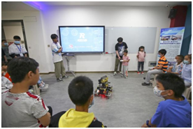 在能源互联网实验室,师生志愿者们对智能机器人的相关知识进行了介绍,随后进行了智能机器狗Mini的现场表演,最后孩子们还亲身体验操控机器狗,亲身感受人工智能的魅力。通过简单生动的讲解,小朋友们理解了机器人的结构和工作原理。随后在欢乐的氛围中,孩子们依次体验了操作机器人的乐趣,潜移默化的激发了科学兴趣和思维。