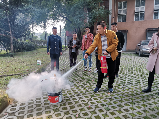 培训首先列举近年发生的多起消防安全事故,然后结合学院特点讲解了实验室日常防火工作开展,预防火灾发生,救人、自救等内容。讲座完后开展了实地灭火训练,让师生熟悉火灾现场应急疏散方法,熟练掌握火灾现场灭火常用的干粉灭火器性能和使用方法。