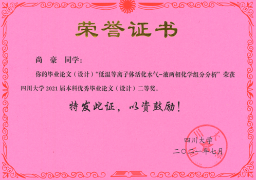 2021指导尚豪获得四川大学优秀本科毕业设计二等奖