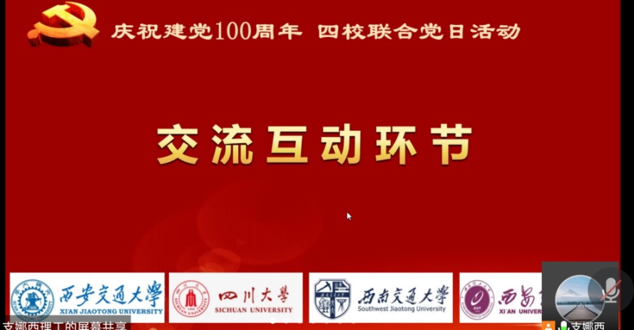 为深入贯彻党史学习的重大决策和部署,全面落实党的教育方针和立德树人根本任务,提升党员教师的业务能力,发挥党员的先锋模范作用,6月24日晚,四川大学电工电子基础教学实验中心党支部联合西安交通大学、西安理工大学和西南交通大学三所大学的电工电子教学党支部,结合教学工作实际,开展了一次主题为“学史力行践初心,校际互联促发展”的线上互联主题党日活动,来自四个高校党支部的近百名党员及教师通过线上线下相结合的方式参加了活动。