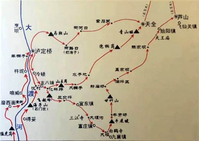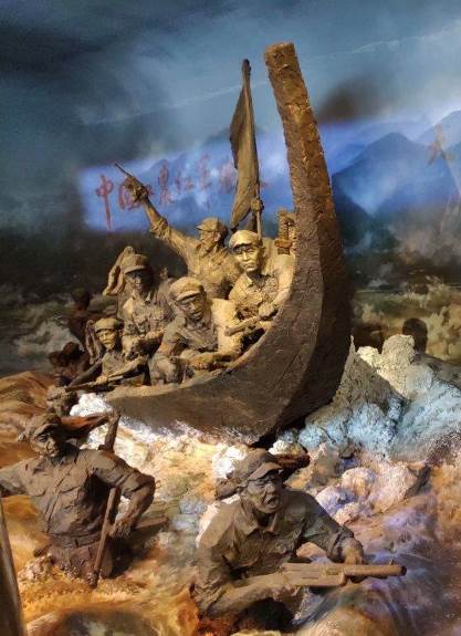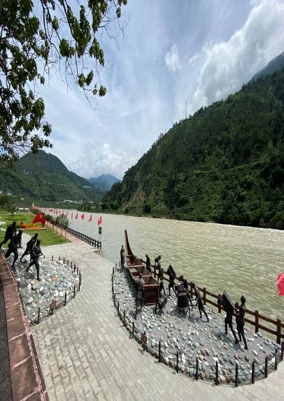 老师们来到古渡口,看着两岸的群山陡峻,河水汹涌,想着当年红军仅靠一只小木船冒着枪林弹雨强行渡河的场景,感触良多。先辈们的勇敢、无畏,不惜牺牲的精神让人热血沸腾。从这里,开始了长征中一段堪称奇迹的艰苦卓绝的战斗征程——强渡大渡河、飞夺泸定桥、虚袭雅安、直取天全、出宝兴、翻夹金,终于完成了一四方面军的胜利会师。