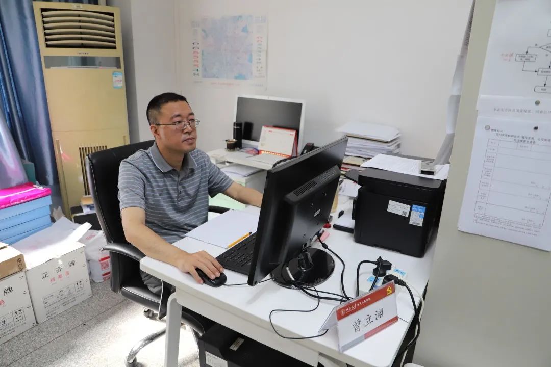 用实际行动展现“不忘初心、牢记使命”的铿锵誓言,以一言一行诠释“忠诚奉献、服务师生”的工作理念,在学院师生的眼中,行政办公室的曾立渊老师就是这样一位不知疲累的踏实人。谈到行政工作,他总是笑着说:“行政岗位虽平凡,行政事务虽繁杂,但正因如此,我们更应脚踏实地,做好每件小事,为大家做好服务!”
