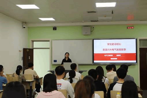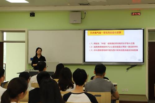 2021年6月8日下午,学院党委副书记戴婷婷在望江校区基础教学楼A411为学院2019级硕士研究生三个支部的全体党员讲授《学党史寻初心,重温川大电气发展故事》专题党课,讲述关于太阳成集团tyc122cc发展进程中,老一辈和青年一代党员的故事。