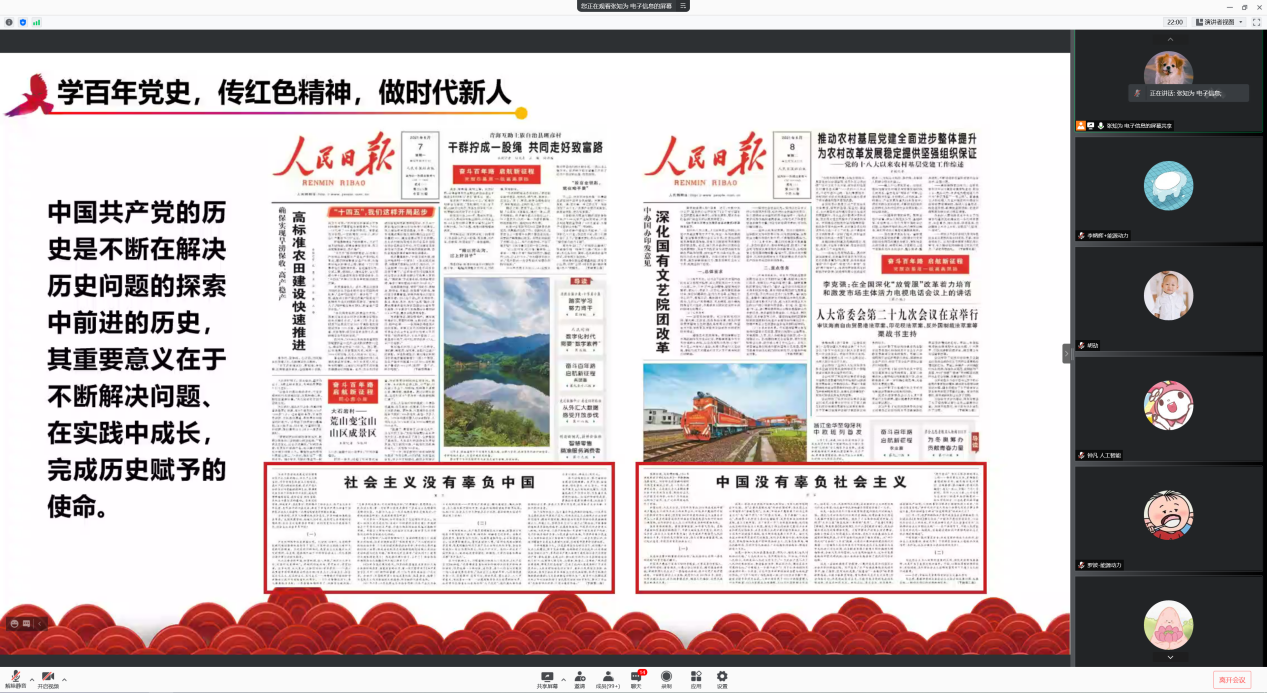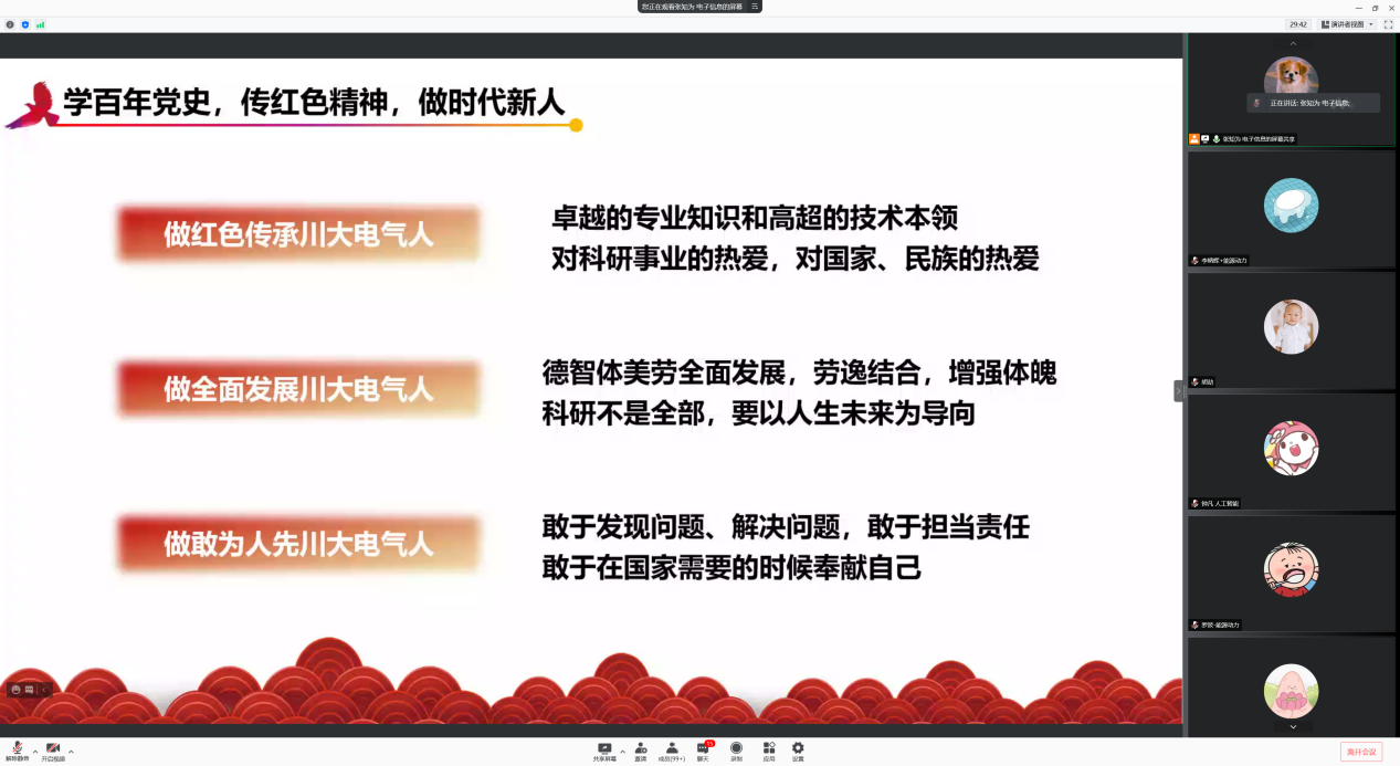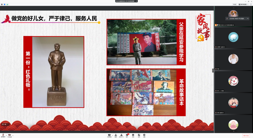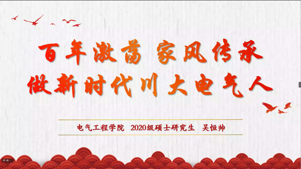 2021年10月24日晚,太阳成集团tyc122cc2021级研究生党史学习教育主题综合素质课在线上举行。课程邀请到我院2020级硕士生吴恒帅结合红色家风,讲述身边党史故事,突显了党史学习教育的深刻意义。2021级全体研究生参加了本次活动,辅导员胡劼老师主持本次课程。