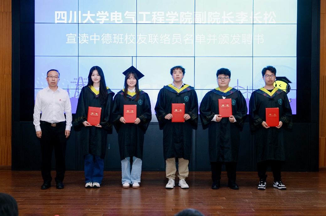 副院长李长松宣读中德班校友联络员名单,并为何知远、许多、安举若、许潇予、吴昊天5位同学颁发聘书,勉励大家搭建校友沟通桥梁,传承项目精神。