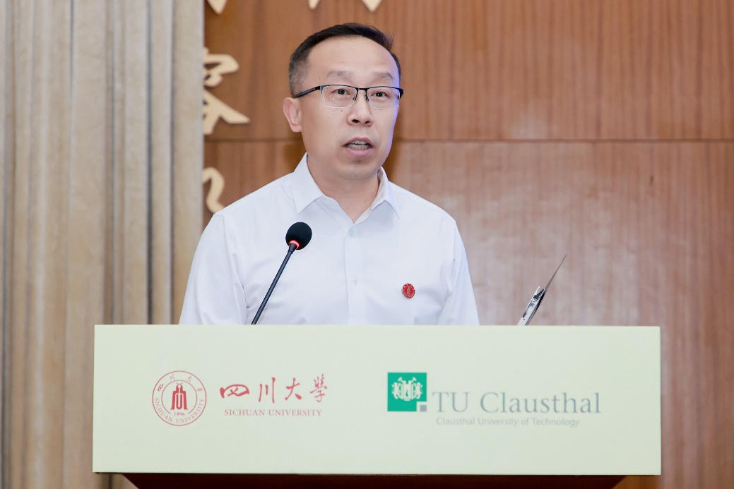 四川大学副校长赵长生代表学校向中德班全体毕业生表示祝贺,向中德双方教师和管理团队表示感谢。他说,电气中德合作办学项目是学校国际化人才培养的一项重要探索,首届中德班学生的顺利毕业标志着两校合作模式取得了阶段性成果,也为学校深化国际教育合作积累了宝贵经验。同学们在四年学习中不仅掌握了扎实的工程知识,还通过赴德交流,拓展了国际视野,提升了跨文化沟通能力与创新能力,整体综合素养显著增强。他勉励毕业生们要坚持终身学习,持续提升自我;要秉持社会责任,服务时代需求;要不断开阔视野,促进交流合作。他祝愿每位毕业生前程似锦,祝愿电气工程中德合作办学项目结出更多硕果。