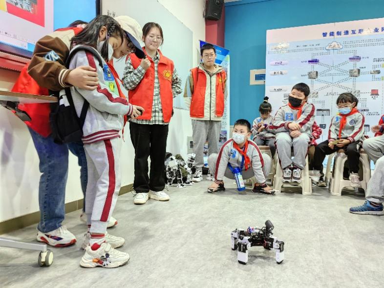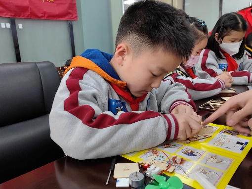 抵达五楼实验室,PMCIRI团队用浅显易懂的话语向小朋友们介绍了机器控制相关的知识,展示活泼的智能机器狗mini,并指导小朋友们动手操控mini前进后退、跳跃跑动。接着,来自2019级电气工程及其自动化专业卓越工程师班的戴昌龙同学团队带来了新能源科普讲座。随后2019级电气江姐班李洋同学团队指导小朋友们进行风光发电小模型的制作。在志愿者的帮助下,小朋友们亲手实践,创意无限。