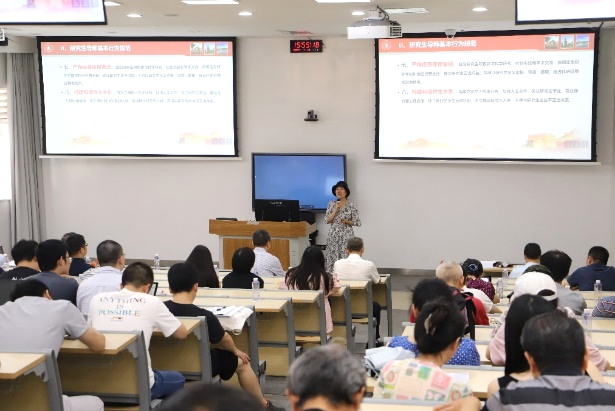 会上,张英敏副书记首先介绍了此次师德师风集中教育的背景和意义,随后,她重点就《新时代高校教师职业行为十项准则》《研究生导师指导行为准则》和《教育部关于在教育系统开展师德集中学习教育的通知》进行了逐条解读,并结合学院教师队伍的具体情况和工作实际作了详细讲解。最后,张书记通过通报几起违反新时代高校教师职业行为十项准则案例进行警示教育,引导老师们做到立德树人、以德为先,做学生敬仰爱戴的品行之师、学问之师。