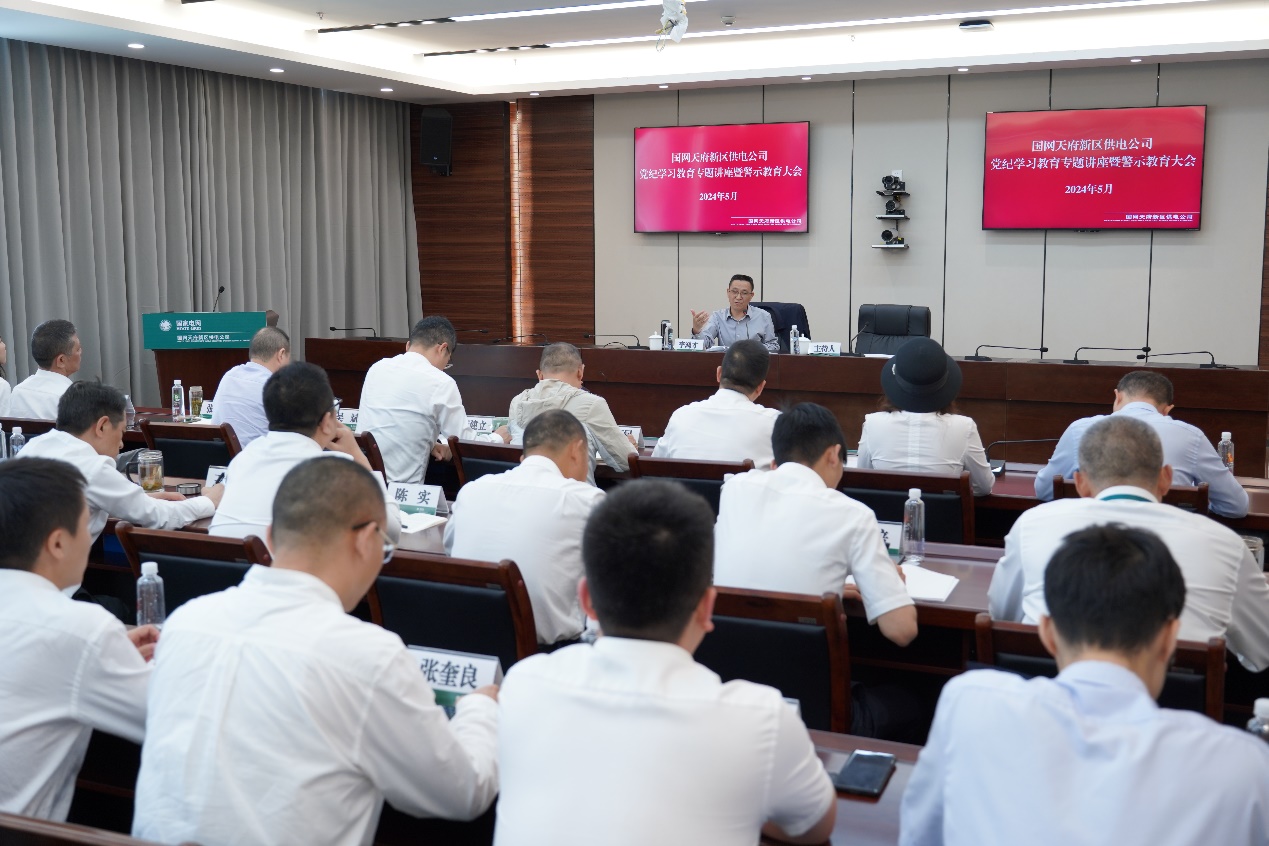 为扎实推进党纪学习教育,推动院企联学联建,5月14日上午,学院党员代表应邀赴国网天府新区供电公司参加党纪学习教育专题讲座暨警示教育大会。会议由国网天府新区供电公司党委书记、副总经理权锐主持,学院党委副书记兼纪委书记、工会主席张英敏,电气工程系党支部书记陈实,行政党支部书记邓清华参加了学习。